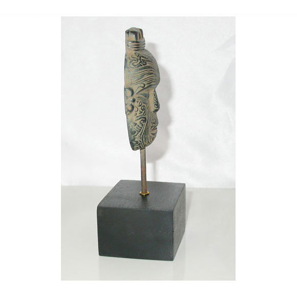 Bronze Maori Mask on Wooden and steel plinth.