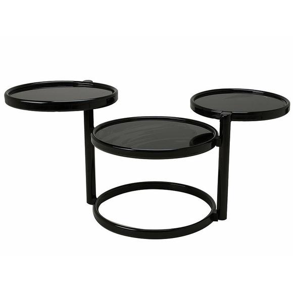 Use as a coffee or side table. This table has the benefits of 3 tables – ideal for making the most of living space without losing out on surface and style. A stunning, innovative product that is essentially ‘3’ tables in ‘1’ and the swivel function allows for easy compact storage. Maximise your living space. Made from black tempered glass and steel frame.