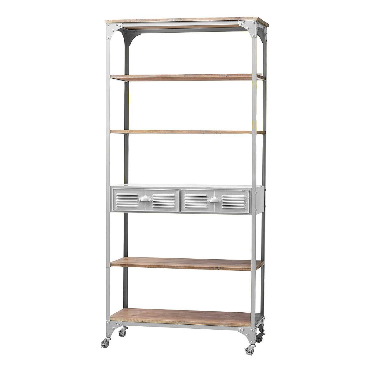 Comprising of wooden shelves and white metal this industrial style unit will fit in with either a modern contemporary living space or equally in an old rustic French style setting.