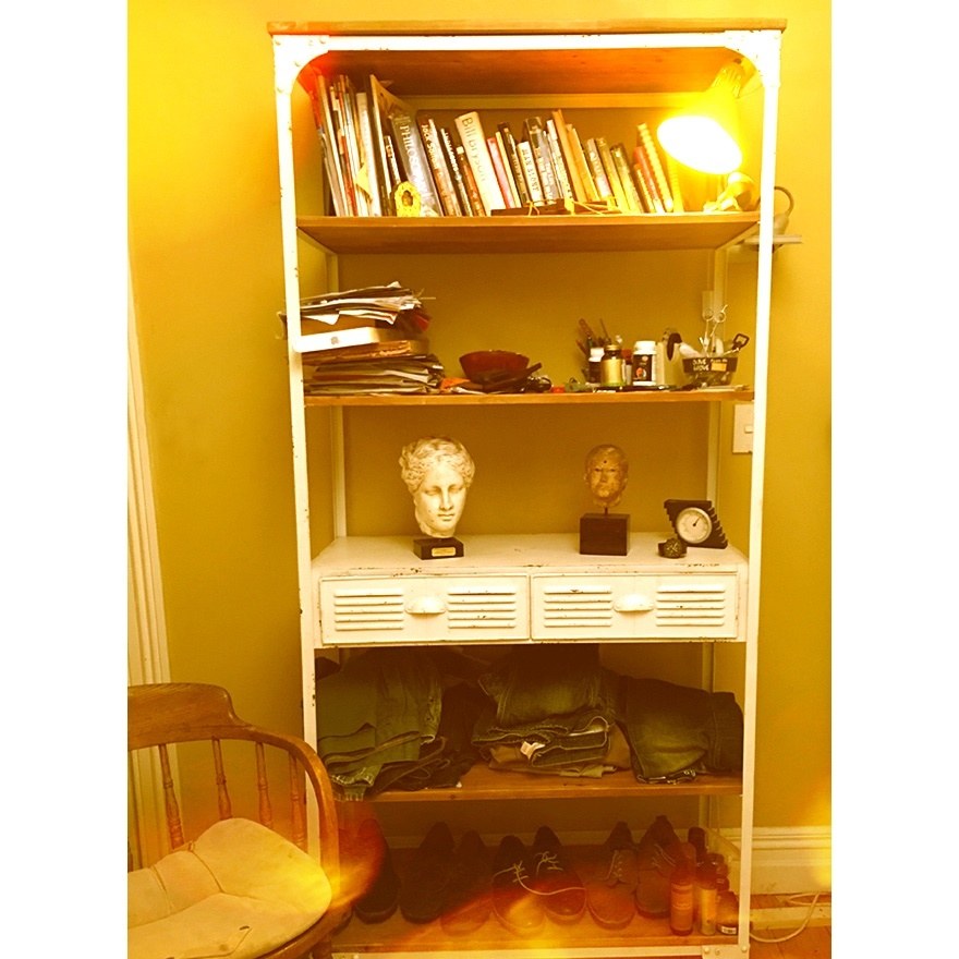 industrial shelving unit with drawers