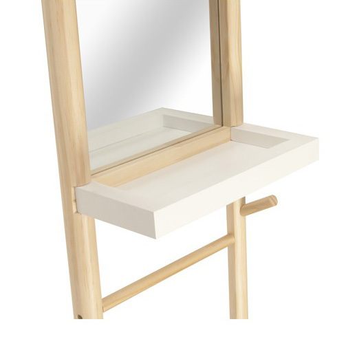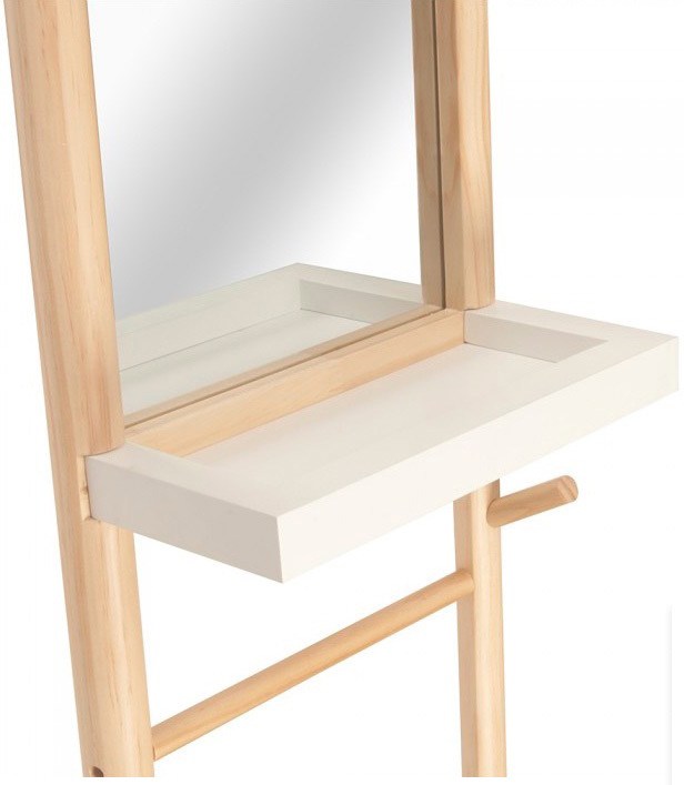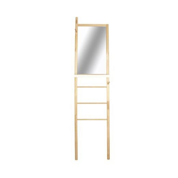 A modern free standing mirror with a ladder for the storage of towels or blankets. In typical Leitmotiv style this cute mirror ladder complete with 2 hooks and small shelf makes a great storage piece in small spaces. Whether in a bathroom, hallway or even in the corner of your living room, this useful little piece of furniture is as beautiful as it is functional.