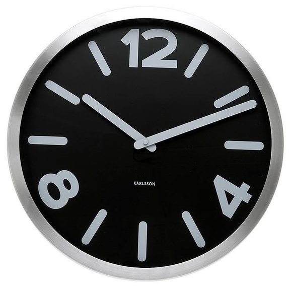 Classic Karlsson wall clock with black face and a stainless steel case.