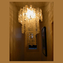 Extra large stunning capiz shell chandelier. Shells attached by clear strands to give the appearance of floating in the air. Backed usually by lower wattage bulbs, the shells emit a warm glow to the room.