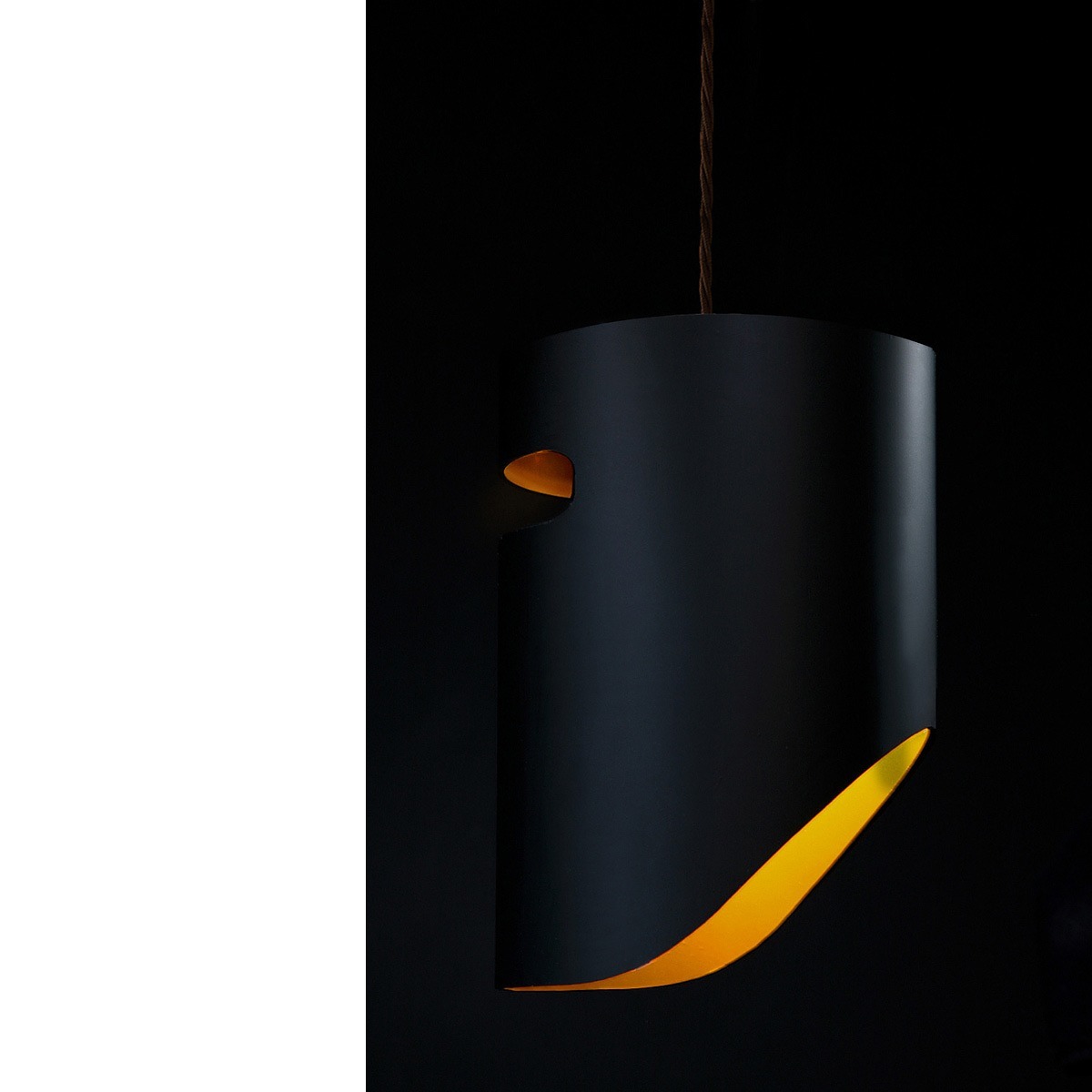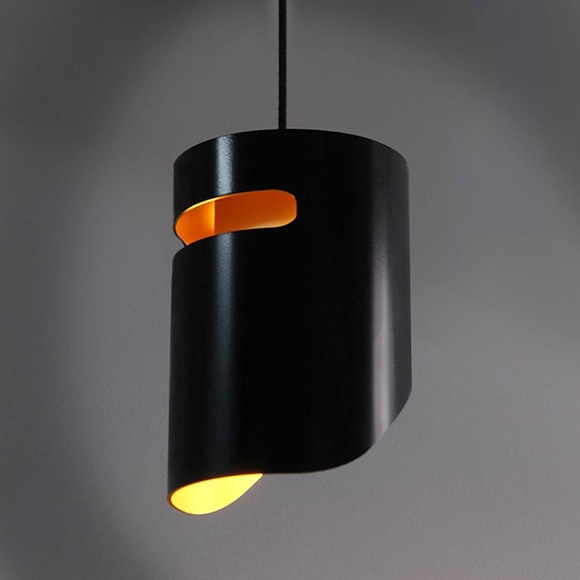 The Kelly Gang Pendant Light by Troy Backhouse … Of all the icons in Australian history, to many none are more dramatic than the helmets of the Kelly gang! The Kelly gang lighting collection is a contemporary series of tubular sculptural lights inspired by the forms of those helmets. The lights are laser cut from extruded aluminium tube with a powder-coated outer finish and an anodised or powder-coated inner finish. The Kelly gang lights emit a soft, warm light through the slotted visor with a more abundant warm glow flowing from the bottom which will reflect the interior gold or other colours, enhancing the contrast against the exterior.