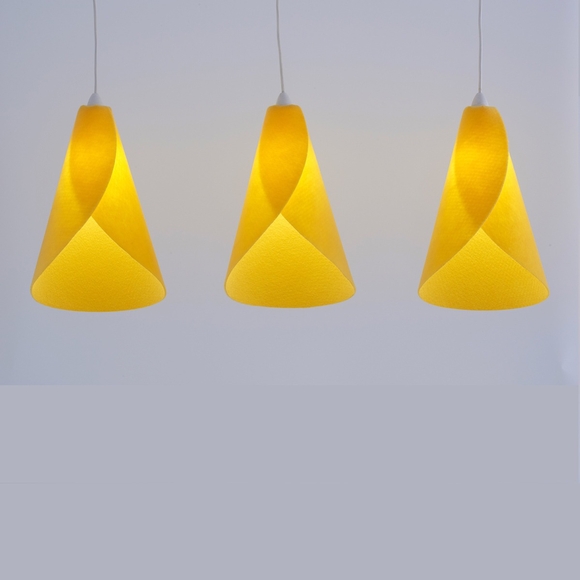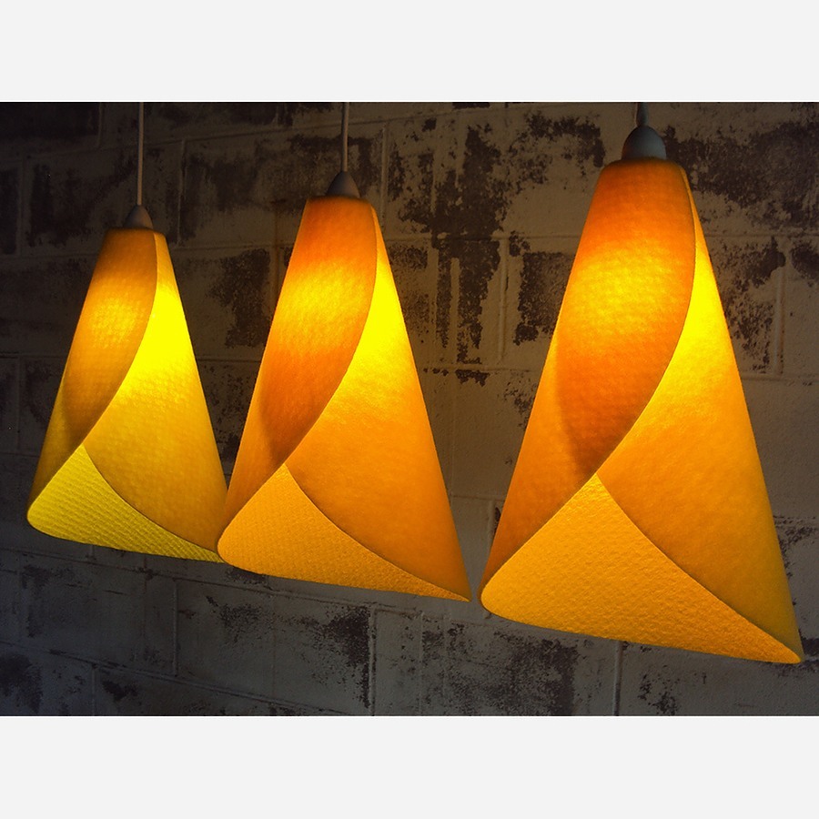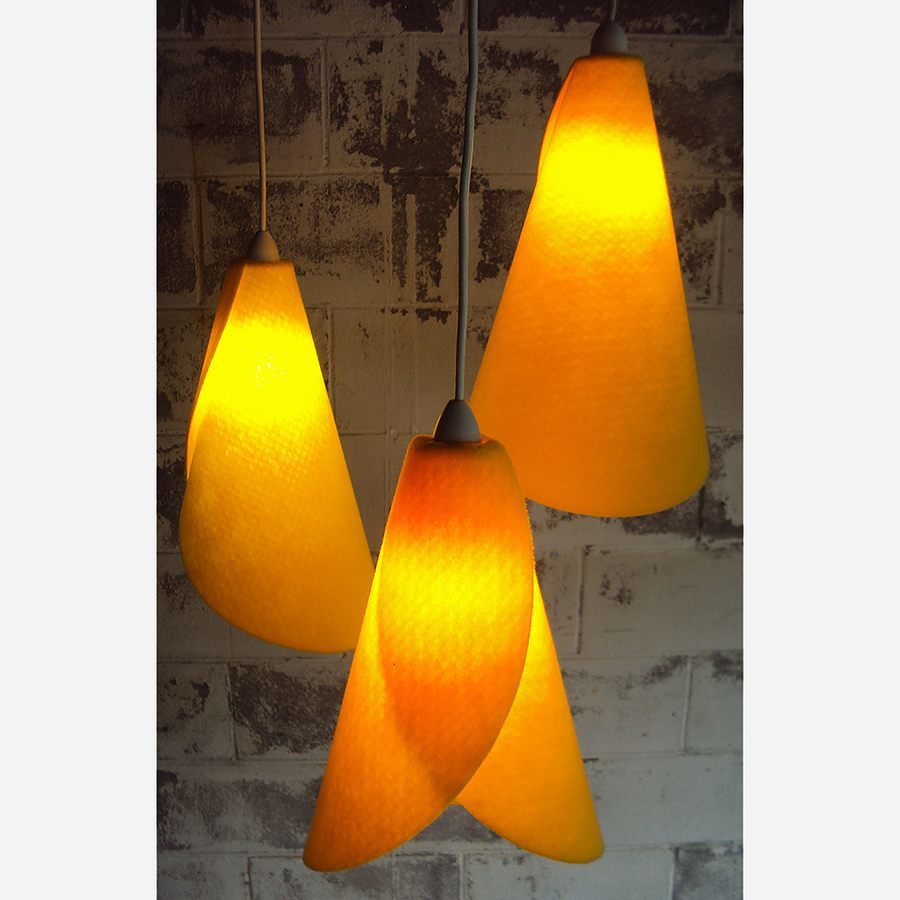 The Kowhai lampshade is hand made in New Zealand. Designed by Ron Crummer it is inspired by the yellow flower of the New Zealand native Kowhai tree. The Kowhai Lampshade is an affordable hand crafted lampshade. Ideal for residential spaces such as bedrooms, living rooms or even over kitchen benches, it can either hang in singles or in clusters, as they do in nature.