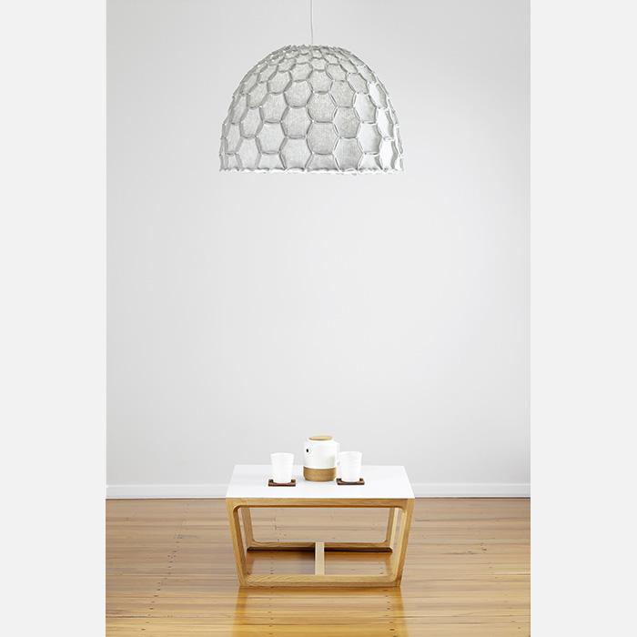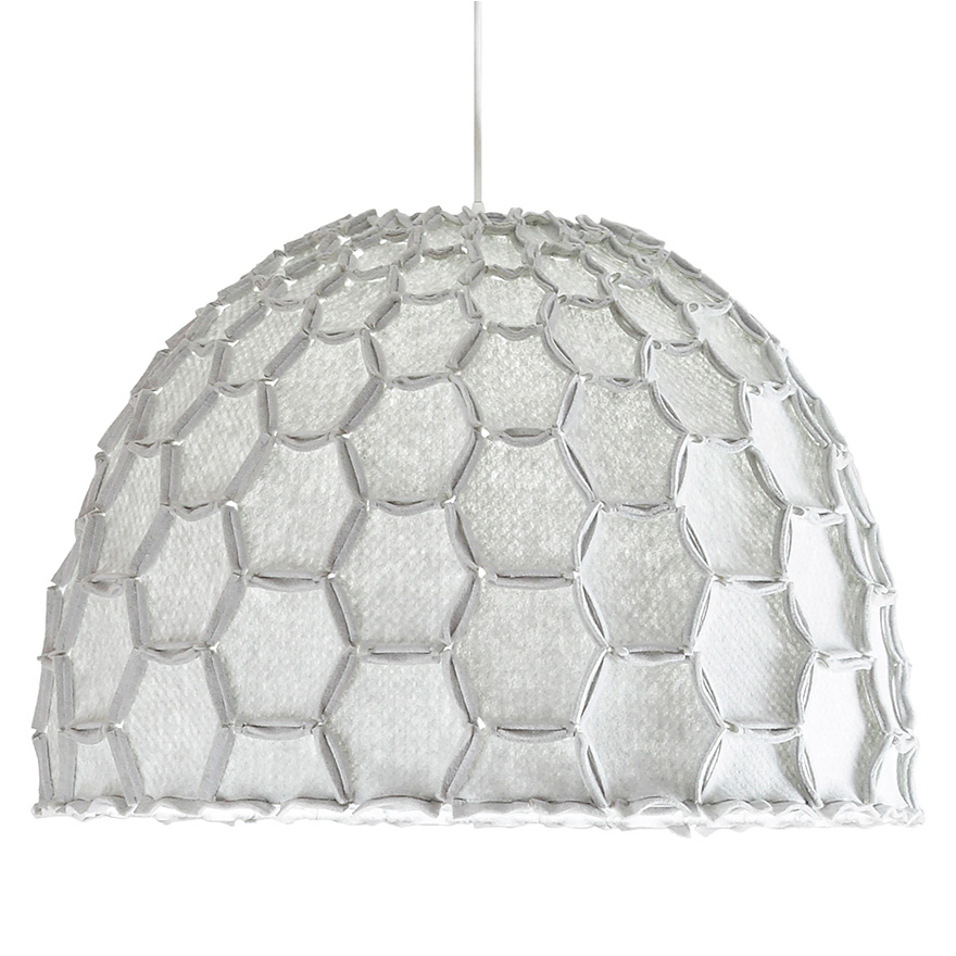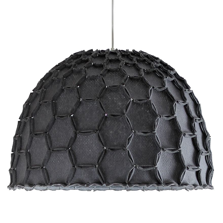 Made from lightweight felted polyester, the Nectar hanging lampshade draws its inspiration from the beehive. The soft and simple form resonates with us tapping into the deep and ancient association we have with bees. During the day it is a soft reminder of the beauty of nature and the amazing strength of the honeycomb structure. At night the Nectar comes alive with a warm and comforting inner glow that also highlights the structure and craftsmanship of the shade.