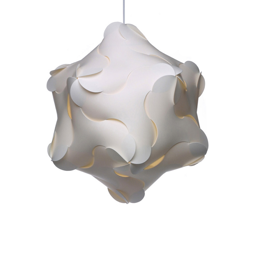 So its a product thats both intelligent and beautiful. The icosahedron resembles an exotic ephemera of a stunning globe of interlocking petals. Each element is symmetrical in shape and has connection means that allow the pieces to overlap forming a rosette that resemblance a Frangipani flower when illuminated.  joug design