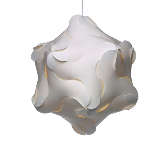 A stunning globe of twenty interlocking modular elements forming a soft flow of white petals of an ethereal gem – its as illuminating as it is shapely, which is why the descriptor Sun of the Flower makes sense.