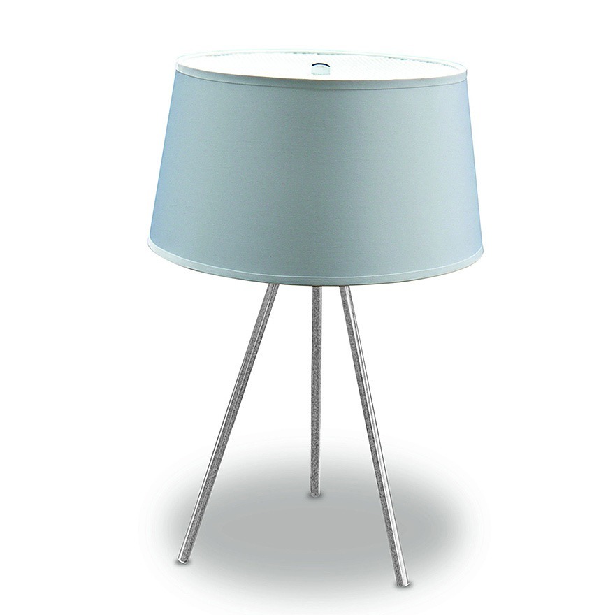 Elegant tripod table lamp providing diffused light. Decorate anew with this fabulous contemporary table lamp design. The piece features a tripod stick base with matt metal finish.