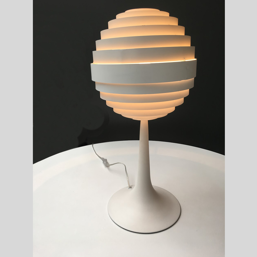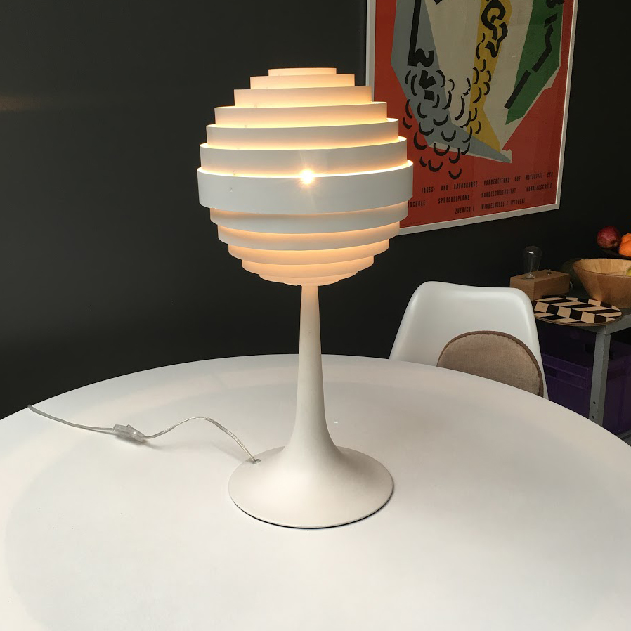 Made from metal and measures 63cm height x 26cm dia. In-line switch. Includes en E27 bulb.