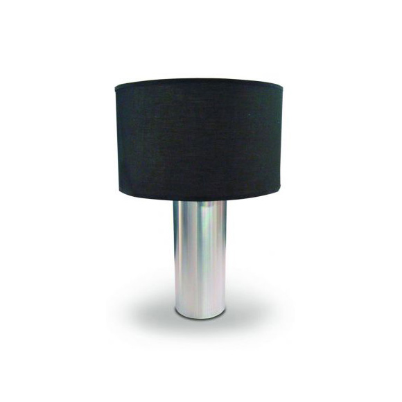 Finished in brushed steel, this modern table lamp is contemporary styled and comes with a cylinder base and features a stylish decorative black shade.