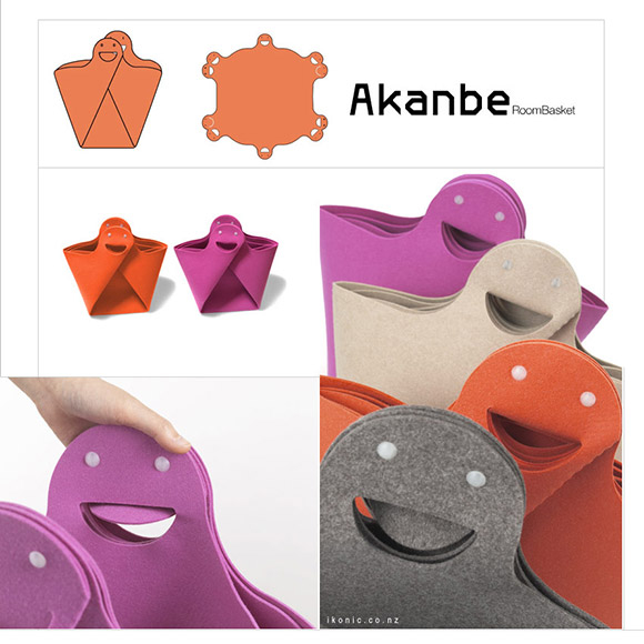Made of felt and cute as a button, this tote is sturdier than it looks. Indoors or outdoors. The Akanbe tote even collapses to be conveniently used as a sheet. Great for picnics. Simplify life with a whole lot of fun.